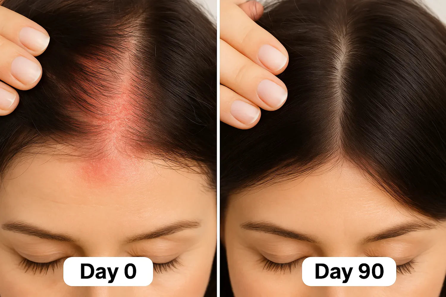 De meeste vrouwen merken binnen 2 weken minder haaruitval. Nieuwe haartjes verschijnen meestal rond week 4–6. Volledige resultaten ontwikkelen zich over 3–4 maanden, net als bij natuurlijke haargroeicycli — maar veel sneller dan bij andere behandelingen.